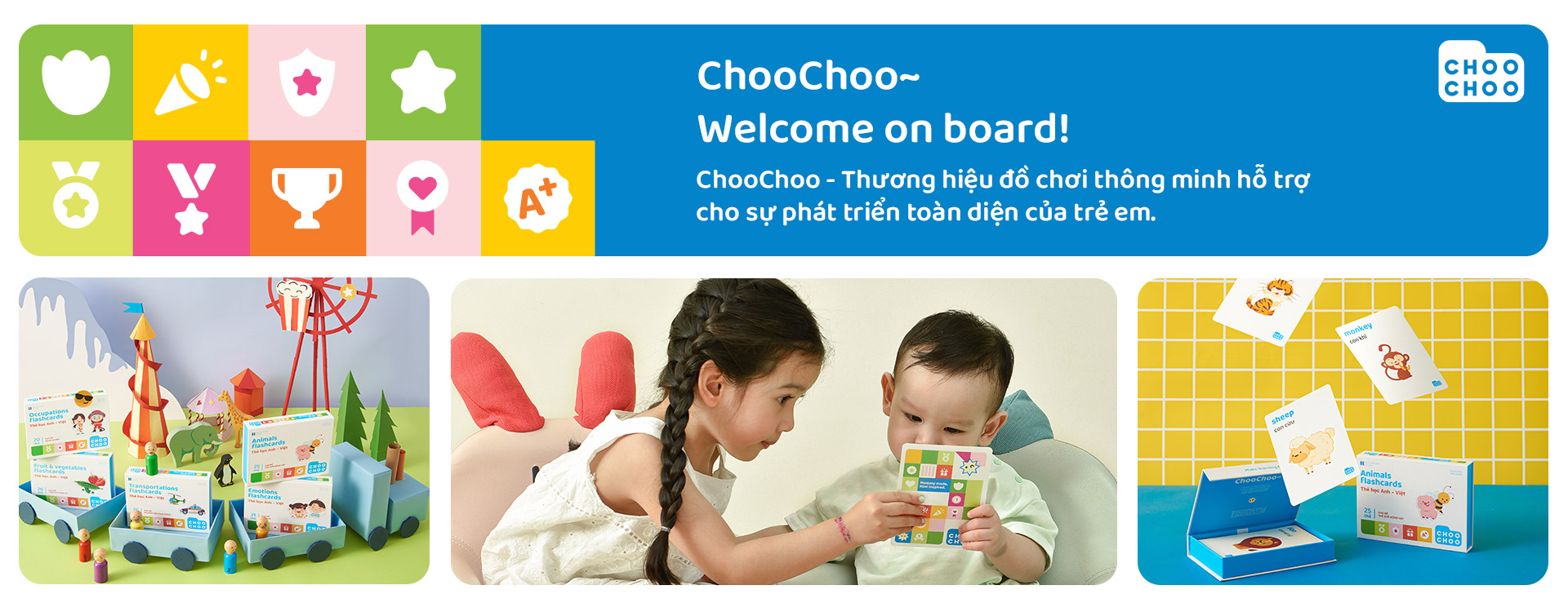 ChooChoo - người bạn đồng hành đầy nhiệt huyết luôn sẵn sàng giúp sức cả gia đình mình để hành trình lớn khôn và nuôi dạy dễ dàng hơn, hiệu quả hơn và đặc biệt vui vẻ hơn, đa sắc màu hơn. Chúng mình tỉ mỉ tạo ra những "bảo bối" đồ chơi giáo dục an toàn, hiện đại và đầy thú vị khiến bạn nhí và ba mẹ sẽ thích mê "từ cái nhìn đầu tiên"